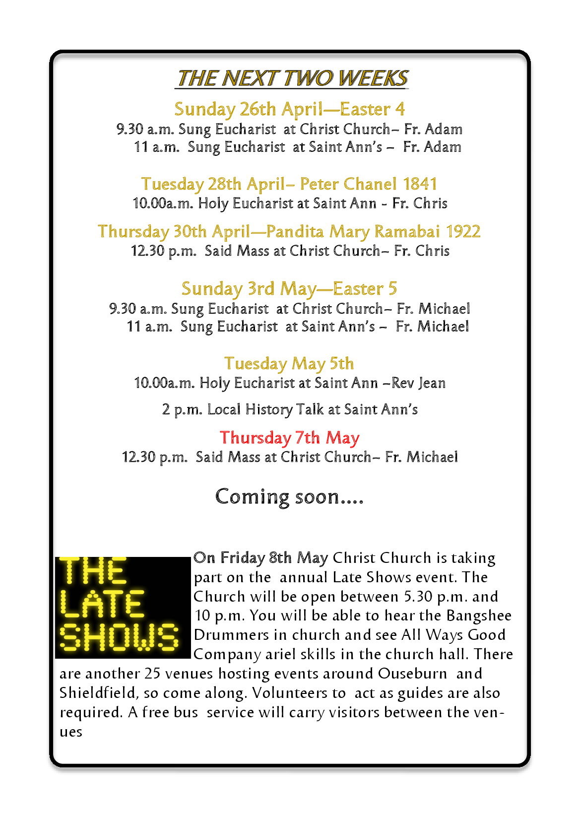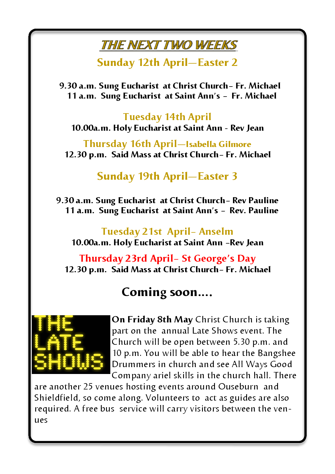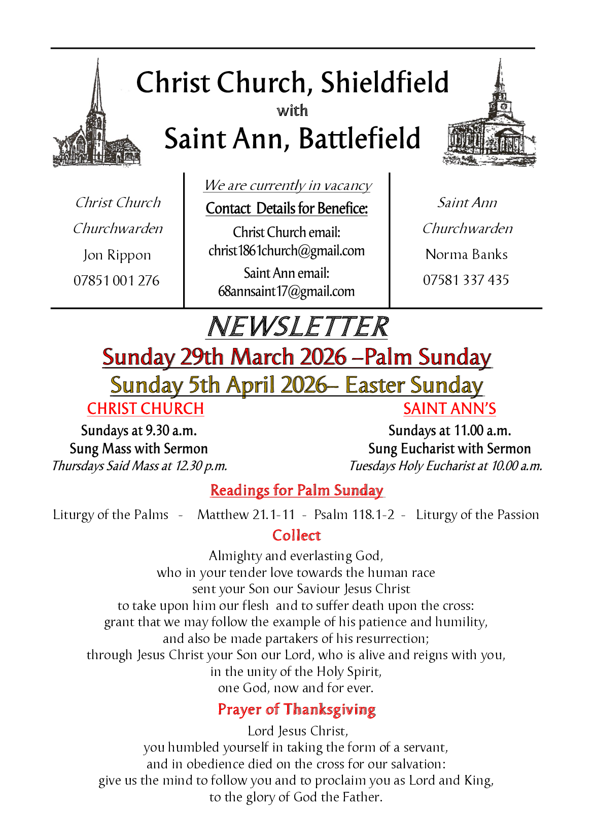 A warm welcome to Saint Ann’s Church. Our website is under development so please keep visiting.